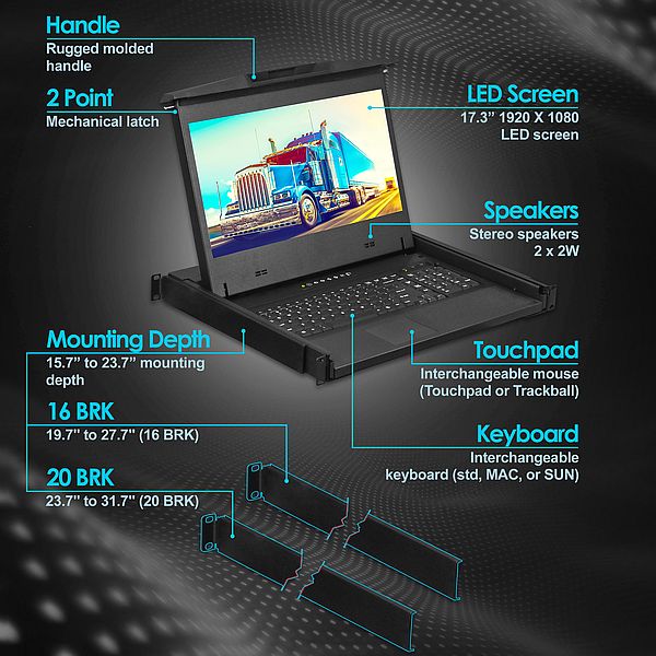 - Rackmount Monitor with 8 Port 2K KVM Switch supports 1080p & 2K resolution)