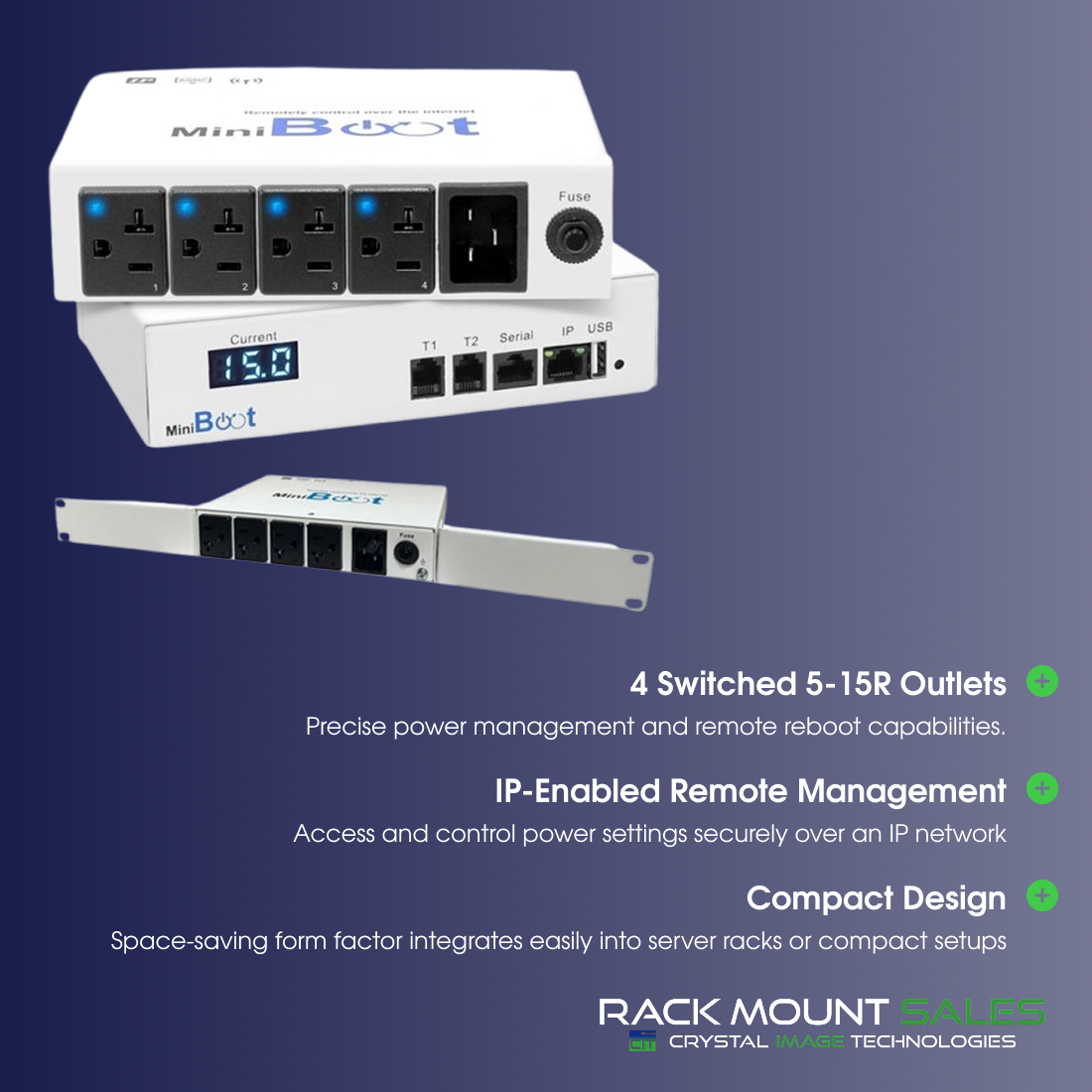 Smart PDU - IP Remote Reboot, 4 Switched NEMA 5-15R Outlets, Remote Reboot PDU (Part# MiniBoot-4US)